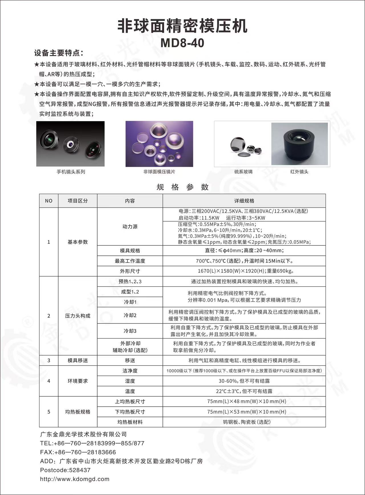 ★本設備適用于玻璃材料、紅外材料、光纖管帽等非球面鏡片(手機鏡頭、車載、監控、數碼、運動、紅外硫系、光纖管帽、AR等)的熱壓成型;